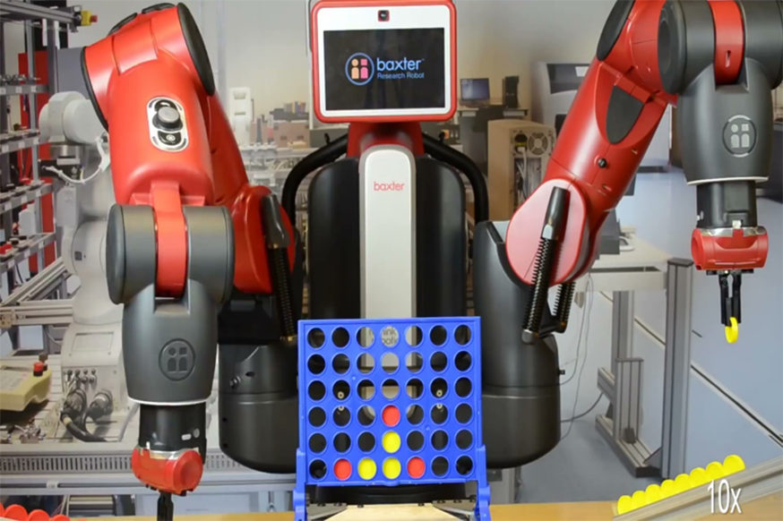 本應(yīng)用是基于Baxter智能雙臂機器人,結(jié)合minimax算法和人工智能領(lǐng)域重要的視覺處理算法,并且調(diào)用了baxter本身的一些結(jié)構(gòu)的SDK,比如正確開啟手臂攝像頭,如何記錄手臂關(guān)節(jié)點位置,以及如何通過關(guān)節(jié)點位置使手臂作相應(yīng)移動等,實現(xiàn)了人與機器人互動進行四連棋對弈,或者Baxter雙臂相互對弈。
