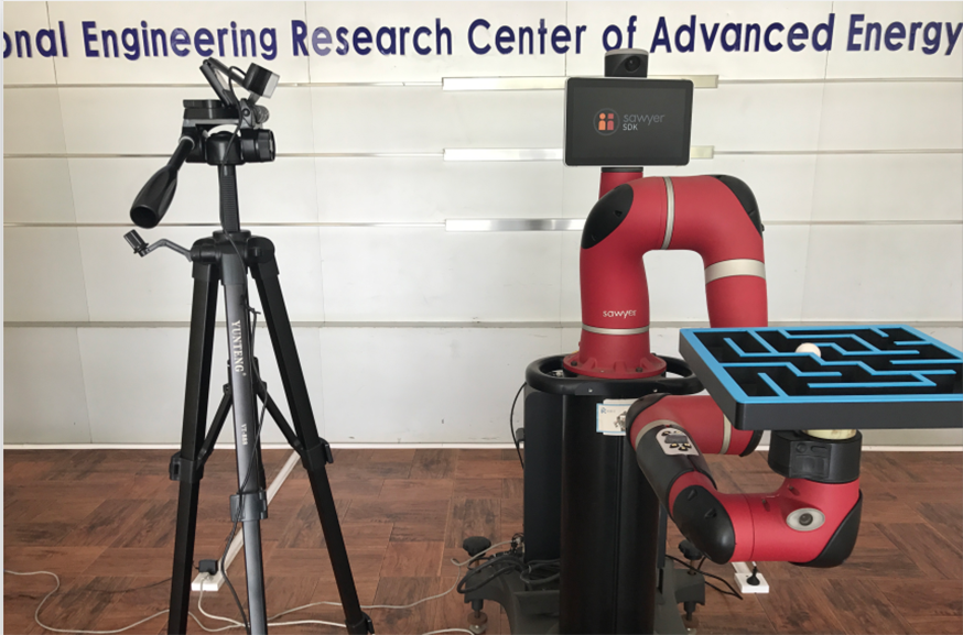 視覺系統(tǒng)自主規(guī)劃迷宮球在迷宮盤內(nèi)起點到終點的路徑,并實時分析當(dāng)前球的位置,機器人根據(jù)視覺位置信息完成機電控制,調(diào)整迷宮盤姿態(tài),完成迷宮逃生。