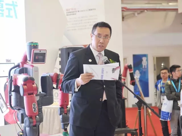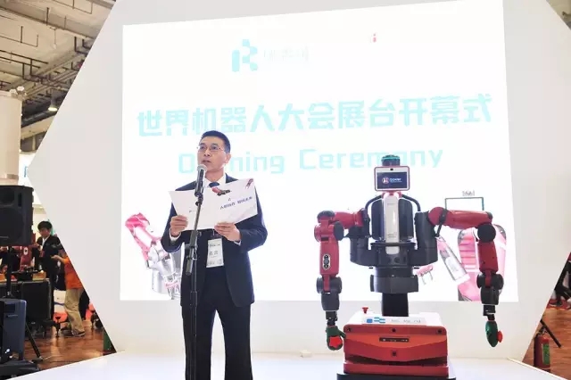 湖南瑞森可機器人科技有限公司董事長楊新明博士在世界機器人大會展臺開幕式上致辭