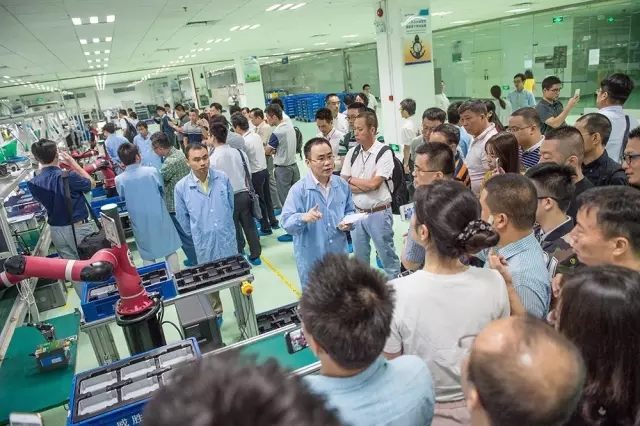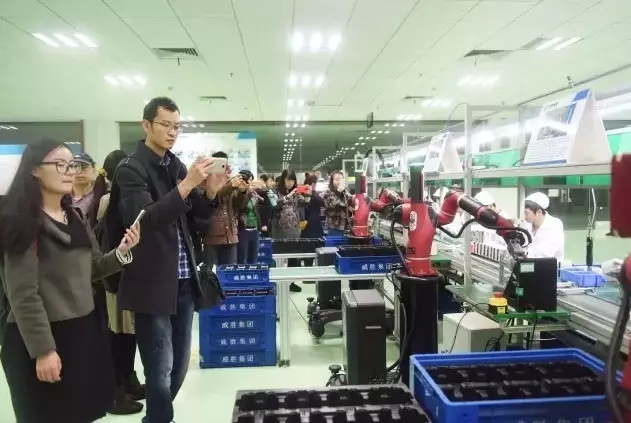 嘉賓參觀威勝集團(tuán)智能制造生產(chǎn)線,對(duì)瑞森可機(jī)器人贊不絕口(資料圖)