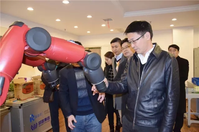 馬洪勝區(qū)長(zhǎng)、胡永栓總裁一行參觀智能協(xié)作機(jī)器人Baxter