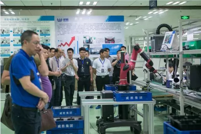 與會嘉賓前往威勝集團參觀與考察,對威勝集團通過瑞森可公司快速布局的兩條智能化生產(chǎn)線贊賞有加。