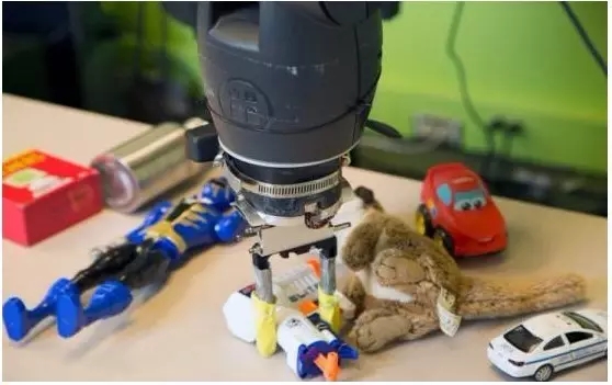 該系統(tǒng)使用類似于Kinect的3D攝像機(jī)。 Baxter收集的視覺和觸覺信息被發(fā)送到一個深層神經(jīng)網(wǎng)絡(luò),它與ImageNet中的圖像數(shù)據(jù)交叉輸入。加上觸摸過程的數(shù)據(jù)訓(xùn)練,機(jī)器人的識別精度比僅使用圖像數(shù)據(jù)訓(xùn)練的機(jī)器人提高了10%。