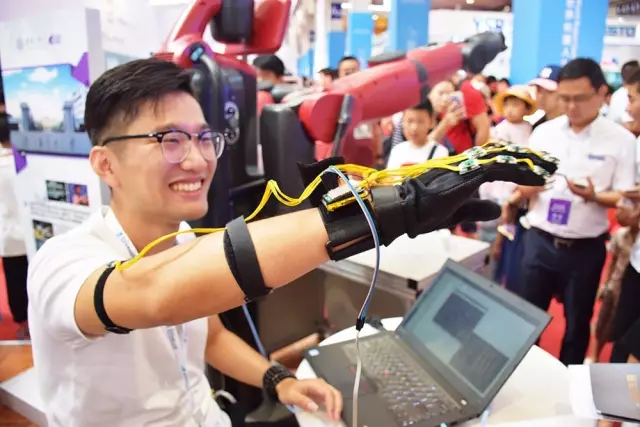 來(lái)自清華大學(xué)研究團(tuán)隊(duì)的帥哥哥現(xiàn)場(chǎng)為大家演示人機(jī)交互。