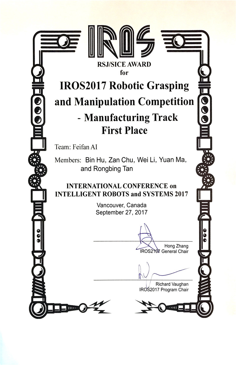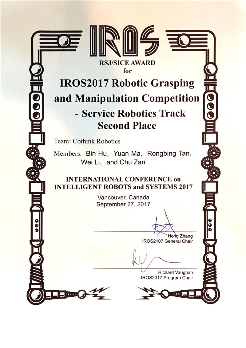 瑞森可技術(shù)團(tuán)隊獲IROS 2017大會機(jī)器人抓取和模擬競賽工業(yè)裝配組冠軍、服務(wù)機(jī)器人組亞軍!