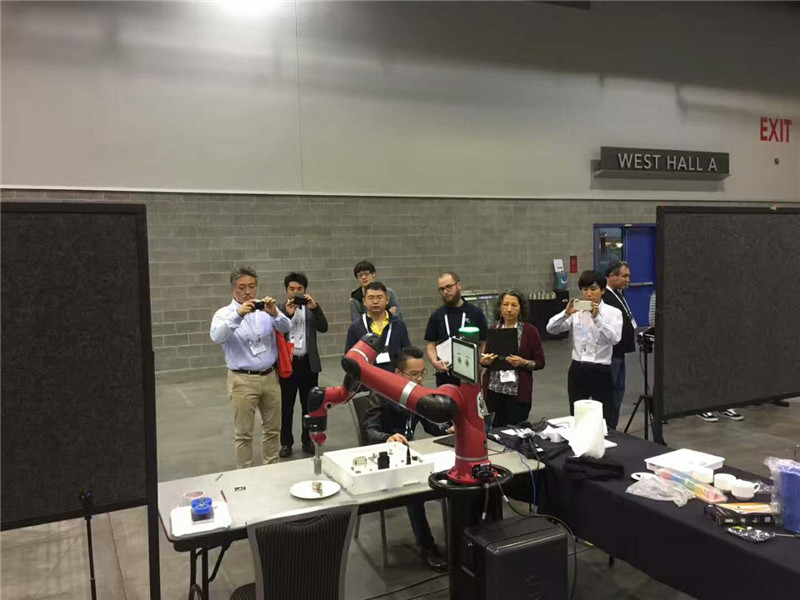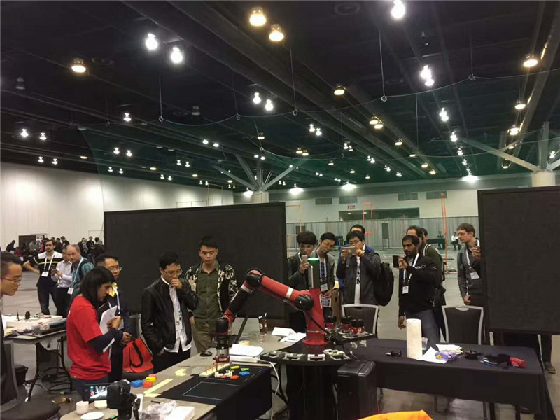 溫哥華時間9月26日,第30屆IROS大會機(jī)器人抓取和模擬競賽在加拿大溫哥華正式拉開帷幕。瑞森可公司副總裁胡斌率領(lǐng)的瑞森可(Cothink)和非凡智能(FeiFan AI)兩支團(tuán)隊,憑借Sawyer機(jī)器人超凡的柔順作業(yè)性能及Intera軟件平臺的優(yōu)勢,收獲頗豐。據(jù)悉,該競賽分為兩個比賽項目,在早上進(jìn)行的工業(yè)裝配組比賽中,來自中國的非凡智能(FeiFan AI)取得了冠軍;在下午的服務(wù)機(jī)器人組,瑞森可(Cothink)獲得亞軍。