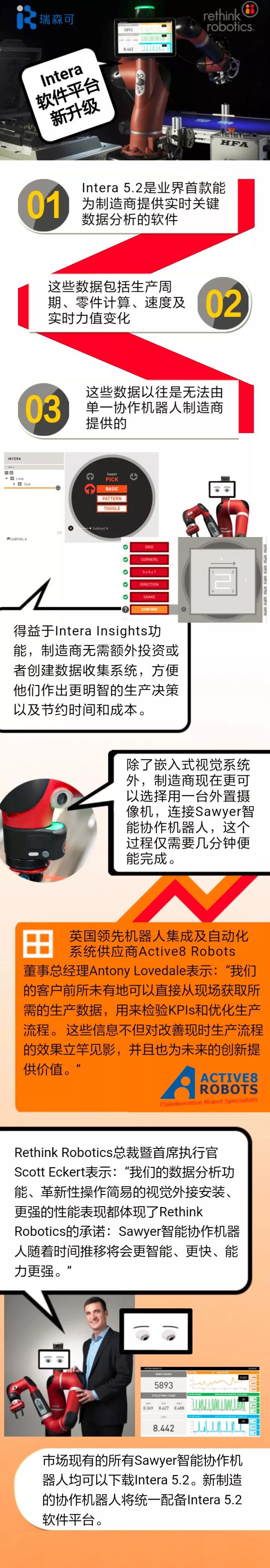 Rethink Robotics的Intera軟件平臺擁有圖像顯示的用戶界面,可以通過示教完成任務,普通工作人員能按需創(chuàng)建和修改機器人任務,為機器人在工廠的極速配置帶來突破性的改變。Intera 5.2是Rethink Robotics軟件平臺的最新版本。